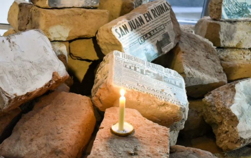 Los titulares de la tragedia que marcaron a los sanjuaninos se podían ver en los escombros que esperaban el encendido de las velas, rememorando los 80 años de un suceso que marcó la solidaridad y la resiliencia de la provincia.