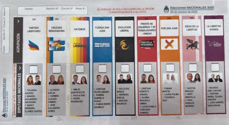 Los electores de la Provincia de San Juan votan por primera vez con la Boleta Única Papel – BUP – el 26 de Octubre para las elecciones nacionales legislativas 2025, cuyos candidatos para defender los Derechos de San Juan