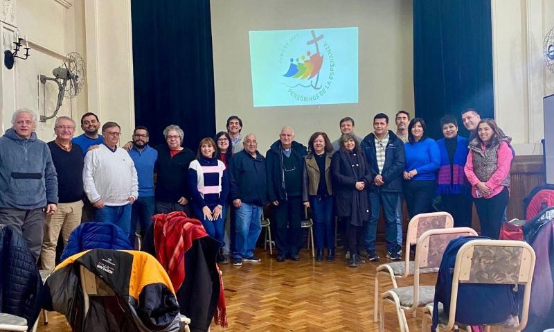 En el salón de actos de Casa España, en el marco del Jubileo 2025, se reunió representantes de la Iglesia Católica de San Juan, presidido por el Arzobispo de San Juan de Cuyo, Monseñor Jorge Lozano y Periodistas San Juan de los medios de comunicación social.