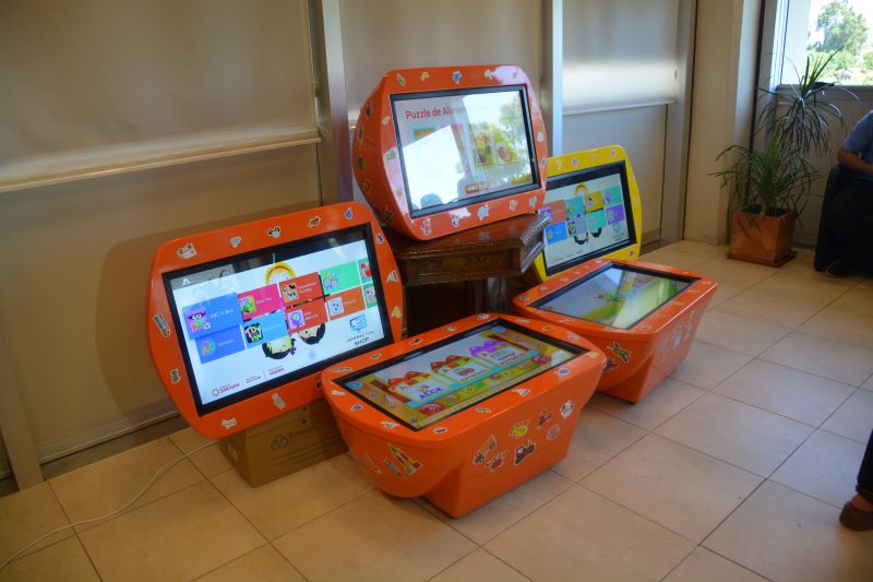 En la sala de reuniones del Ministerio de Educación, los Ministros de Minería del Gobierno de San Juan, Ing. Carlos Astudillo y de Educación, Lic. Cecilia Trincado junto a la directora de Nivel Inicial Prof. Laura Castro, entregaron 84 mesas digitales a escuelas de los departamentos de: Capital, Rivadavia, Caucete, Chimbas y 25 de Mayo.