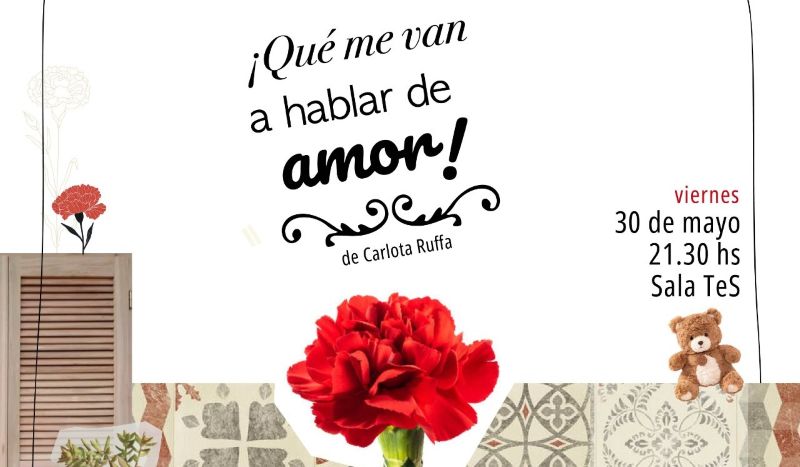 El Viernes, 30 de Mayo, a las 21:30 hs.; en el Espacio Teatral TeS, Juan B Justo 335 – S – Departamento Rivadavia, se presenta el unipersonal “¡Que me van a hablar de amor!” escrito e interpretado por Carlota Ruffa, la puesta en escena y dirección del espectáculo esta a cargo de Ana Paula López y Emiliano Voiro.
