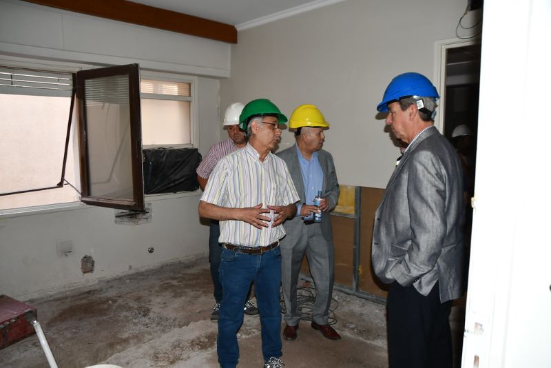Durante la visita a los trabajos, el vicegobernador y el secretario estuvieron acompañados por el ingeniero Jorge Vila y el arquitecto Abel Terranova, de la Dirección Técnica y Mantenimiento junto al ingeniero Carlos Eugenio Seguín a cargo de la dirección de la obra, quienes guiaron el recorrido, al tiempo que ofrecieron los detalles y explicaciones estrictamente técnicas acerca del nivel de intervención edilicia que está llevándose a cabo.