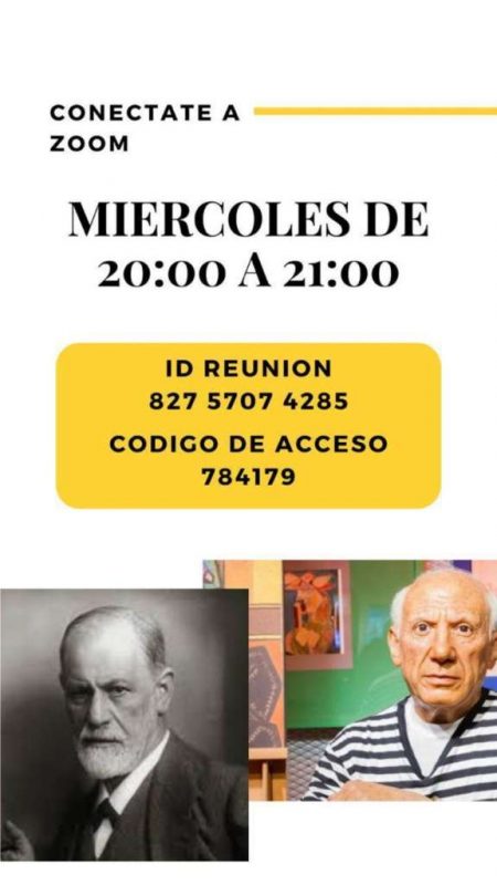 Cartelera “Picasso y Freud. Sociedad, fama y la estética de lo siniestro” San Juan, 1 de septiembre de 2020 Analia Neira Compartir en tus redesEl Miércoles, 02 de Septiembrte, de 20 a 21 hs.; por Zoom se desarrolla la conferencia “Picasso y Freud. Sociedad, fama y la estética de lo siniestro” a cargo de Michel Zeghaib Nafa