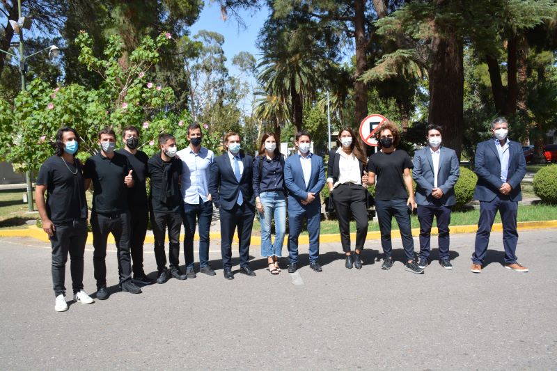 En Casa de Gobierno, el gobernador de San Juan, Dr. Sergio Uñac, junto al ministro de Producción y Desarrollo Económico, Ing. Ariel Lucero, recibió a representantes de la Unión Industrial Argentina Joven, entre ellos Ricardo Palacios, presidente de la UIA San Juan; Micaela Taboada, presidenta del Departamento Joven de la UIA San Juan; Tomás Karagozian, presidente de la UIA Joven y titular de Tn&Platex hilandería; Oliver Malz, vicepresidente sectorial del Espacio Joven de UIA; Jorge Karagozlu, vicepresidente de la UIA Joven en representación de la Unión Industrial Textil; Guido Mellicovsky, presidente de Laboratorios Ecovita; Laura Echegaray, pro tesorera UIA San Juan; Andrés Prieto, UIA Argentina y Kevin Kogan, presidente de 47 Street, entre otros.