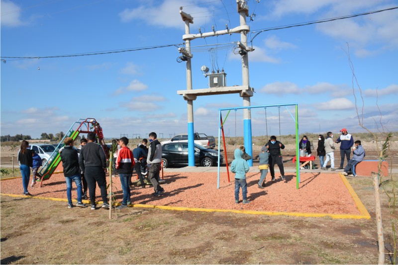 Estuvo acompañado por otros funcionario municipales de distintas áreas como los Diputados departamentales que fueron recibidos por los vecinos y gran cantidad de niños que disfrutan con gran alegría y felicidad los juegos.