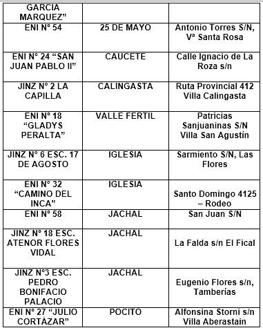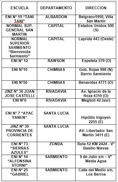 En los departamentos de Ullum, San Martín, Angaco y 9 de Julio, deben dirigirse directamente en las escuelas que necesiten inscribir a sus hijos/as.