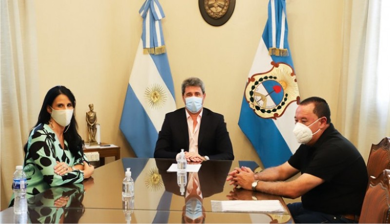 En la sala Camus de Casa de Gobierno de San Juan, el gobernador, Dr. Sergio Uñac, se reunió con la presidente de la Cámara de Expendedores de Combustibles, Analía Salguero y el tesorero del Sindicato Unión de Obreros de Estaciones de Servicios de Cuyo, Víctor Manuel Menéndez.
