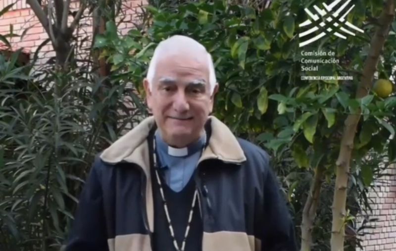 El Arzobispo de San Juan de Cuyo y presidente de la Comisión Episcopal de Comunicación Social de la C.E.A. Monseñor Jorge Lozano saluda a los Periodistas San Juan.