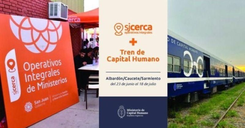 Por contar con conexión ferroviaria, los pobladores de los Departamentos Albardón, Caucete y Sarmiento reciben durante las últimas semanas de Junio y principios de Julio de 2025 no sólo al operativo San Juan Cerca, sino también al Tren de Capital Humano, una formación especial que permite acceder a trámites y servicios de cobertura nacional además de atención médica puntual, como odontología y oftalmología, entre otros.