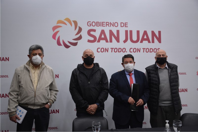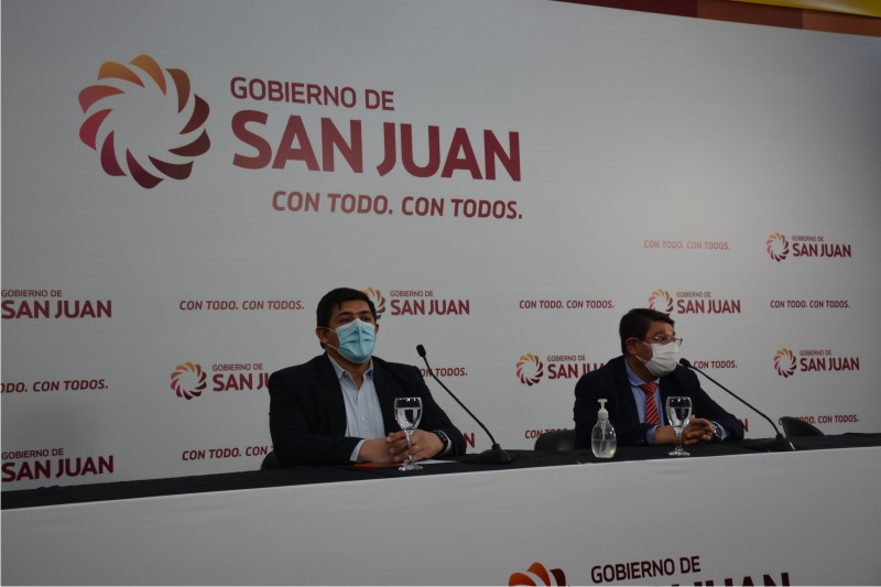 En la sala Carlos Mendoza de Casa de Gobierno de San Juan, el ministro de Educación, Lic. Felipe De Los Ríos y el subsecretario de Medicina Preventiva de Salud Pública, Dr. Matías Espejo, en conferencia de prensa, explicaron que ante la responsabilidad social y las favorables condiciones epidemiológicas se inicia el proceso de presencialidad plena en los 5 departamentos del Gran San Juan. También estuvieron presentes los tres secretarios generales de los gremios docentes Luis Lucero de UDAP, Julio Rosa de UDA y Daniel Quiroga de AMET.