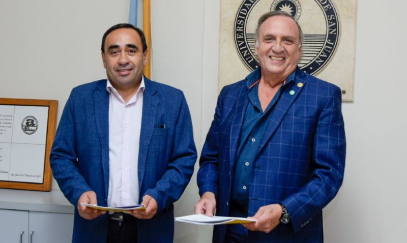 El decano de la Facultad de Arquitectura, Urbanismo y Diseño de la Universidad Nacional de San Juan, Arq. Guillermo Velasco junto con el intendente de la Municipalidad de Iglesia, Dr. Jorge Espejo ratificaron la relación académica que tienen ambas instituciones con la firma de un nuevo convenio, con el objetivo de implementar el Curso «Oficial en Pintura», que permite a los estudiantes manejen diferentes técnicas y materiales..