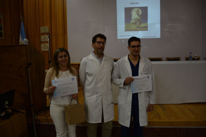 la Jornada finalizó con la entrega del reconocimiento por parte del a dos trabajos de investigación, el Director Ejecutivo del Hospital Dr. Marcial Quiroga, Dr. Andrés Escudero a los profesionales científicos, Dr. Miguel Rueda y la Lic. Marianela Elizondo.