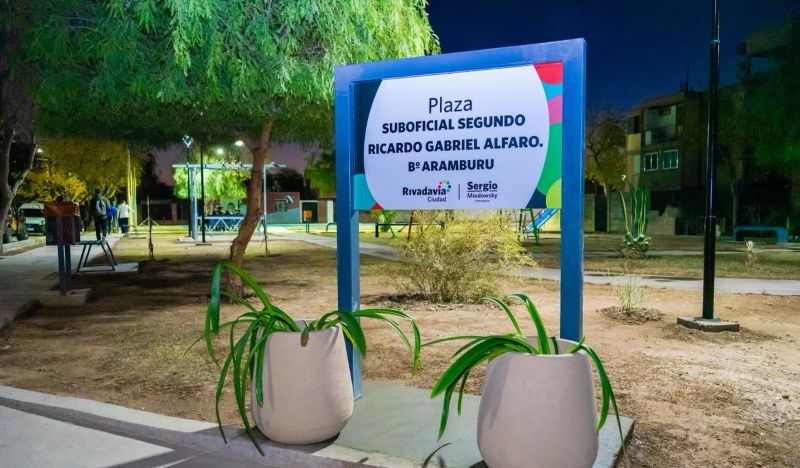 La Municipalidad de la Ciudad de Rivadavia celebra la inauguración de la renovada Plaza Suboficial Segundo Ricardo Gabriel Alfaro, un espacio verde en el corazón del Barrio Aramburú que ha sido completamente transformado gracias a recursos propios de la comuna.