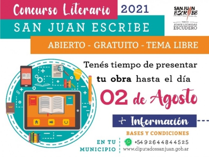 La Cámara de Diputados de San Juan resolvió prorrogar el plazo de cierre de la recepción de los trabajos del Concurso Literario “San Juan Escribe. Premio Jorge Leónidas Escudero Edición 2021”, a partir de la solicitud de las distintas intendencias municipales de la provincia.