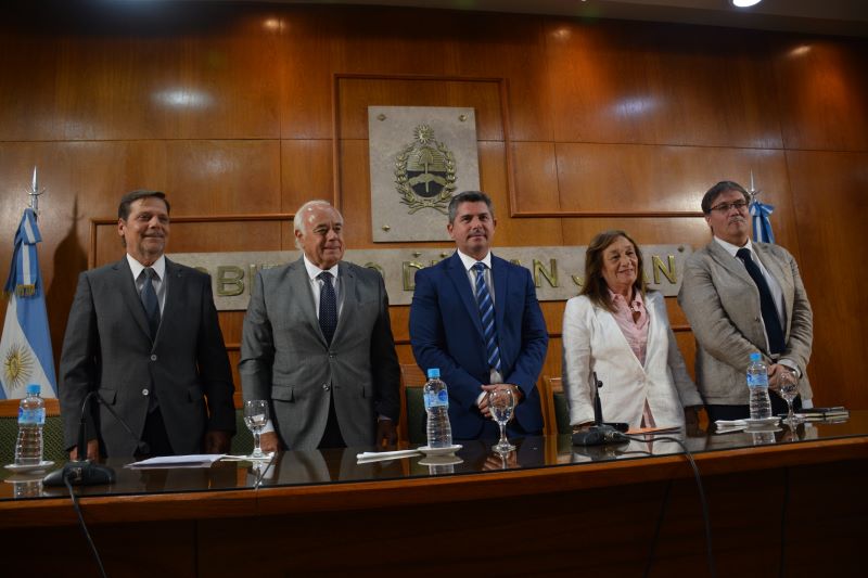 Participaron además, el presidente de la Corte de Justicia, Dr. Marcelo Lima, ministros de la Corte de Justicia, Dra. Adriana García Nieto; Dr. Guillermo De Sanctis; Dr. Daniel Olivares Yapur; Dr. Juan José Victoria; ministros de Familia y Desarrollo Humano, Prof. Carlos Platero; Gobierno, Dr. Laura Palma, asesor Letrado de Gobierno, Dr. Alejandro Ferrari, intendentes de la Ciudad de Capital, Dra. Susana Lacia; Rawson, Dr. Carlos Munisaga; Jáchal, Dr. Matías Espejo; Santa Lucía, Juan José Orrego, demás funcionarios judiciales, de Seguridad, municipales y legisladores.
