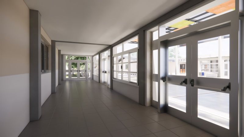 - Cierre de galerías semicubiertas: se cerrarán mediante carpinterías y mampostería para optimizar la protección frente a las inclemencias climáticas y ordenar las circulaciones internas.