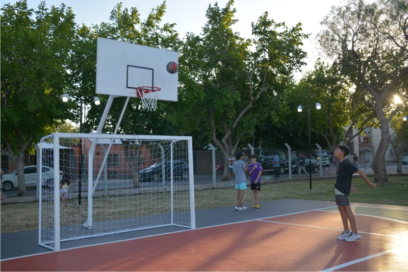 Es importante destacar que el Polideportivo cuenta con tres canchas de fútbol, básquet y vóley, luminarias Led, cierre perimetral, bancos, cestos para residuos, parquizado y diferentes especies arbóreas.