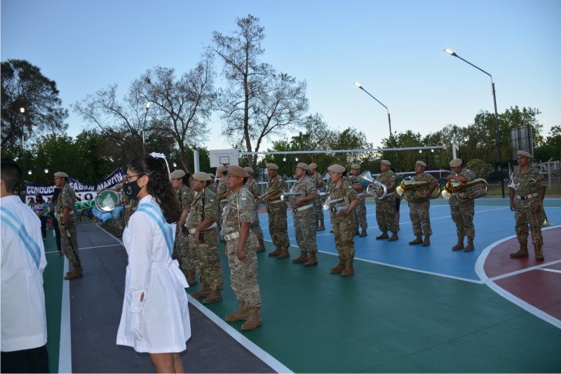 Seguidamente, la Banda de Música del RIM 22 acompañó el Himno Argentino que fue entonado por todos los presentes.