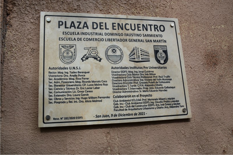 Se inauguró la «Plaza del Encuentro» de los IPU de la UNSJ EIDFS y ECLGSM