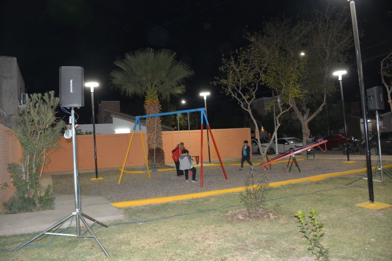 La Municipalidad de Rivadavia inauguró las obras para su embellecimiento de la Plaza Divino Salvador del Barrio Ignacio de la Roza, Antonio Sánchez Ramos y Francisco Gil.