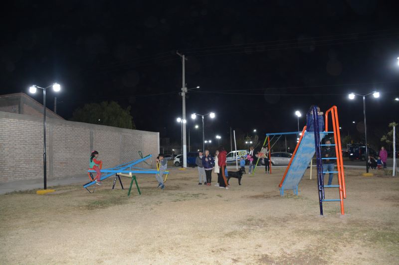 La Municipalidad de Rivadavia realizó un trabajo de obra pública en el Barrio Cooperarq VIII en la construcción de una plazoleta en un espacio libre que pone color a la esquina y que permite que los niños puedan disfrutar de los juegos como hamacas, toboganes y subibajas que son utilizados para todas edades, además, las veredas permiten caminar o andar en bicicleta o patines sin peligros. La iluminación LED que da al espacio una propuesta diferente.