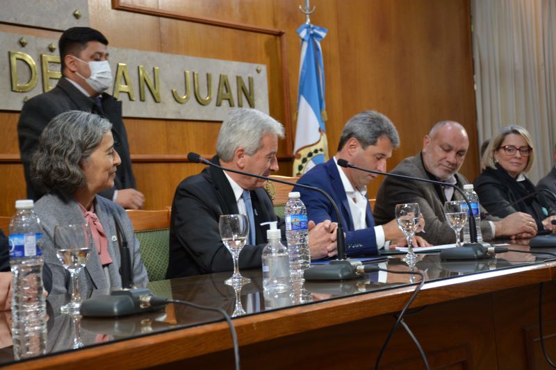 Acompañaron además los ministros de Obras y Servicios Públicos,Ing. Julio Ortiz Andino; de Educación, Prof. Cecilia Trincado Moncho; de Producción y Desarrollo Económico, Ing. Ariel Lucero y de Minería, Ing. Carlos Astudillo; la secretaria de Ciencia, Tecnología e Innovación, Ing. Marita Benavente; el asesor letrado de Gobierno, Dr. Carlos Lorenzo; en representación del INA CRAS San Juan, Lic. Raúl Tello; la senadora nacional Lic. Cristina López; el intendente de Sarmiento, Mario Gustavo Martín; el defensor del Pueblo, Dr. Pablo García Nieto y el presidente de OSSE, CPN Guillermo Sirerol; entre otros.