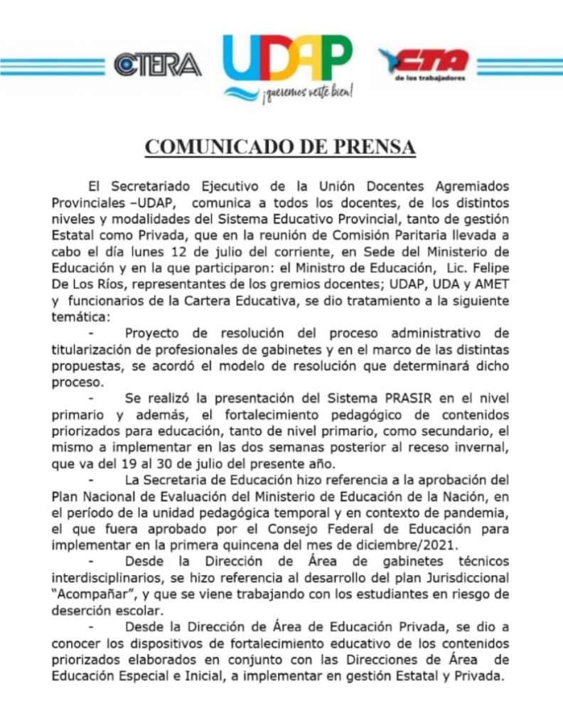 Destacadas Se resolvió el proceso administrativo de titularización de profesionales de gabinetes San Juan, 12 de julio de 2021 Analia Neira Compartir en tus redesEl Secretariado Ejecutivo de UDAP informa a los docentes que en reunión paritaria se resolvió el proceso administrativo de titularización de profesionales de gabinetes.