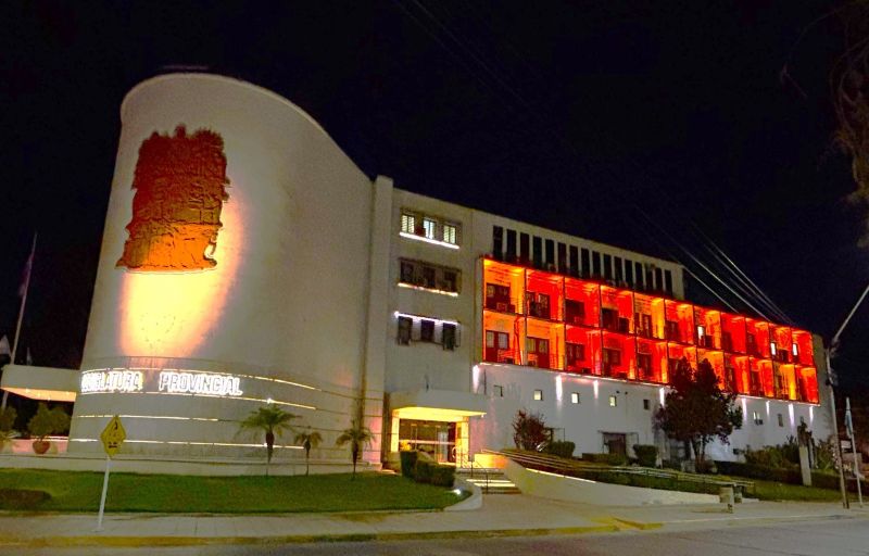 En memoria de Shiri, Ariel y Kfir Bibas, los argentinos-israelíes asesinados por el grupo terrorista Hamas, por ello, el Edificio de la Cámara de Diputados de San Juan se iluminó de naranja. El color se eligió en alusión a sus cabellos pelirrojos.