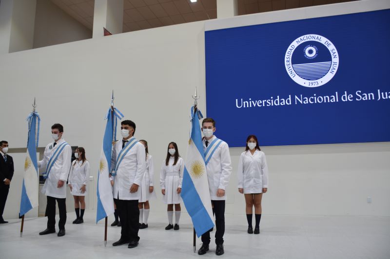 Con un acto realizado en el Edificio Central de la Universidad Nacional de San Juan, se desarrolló el cambio de los cuerpos de Bandera Nacional de los Institutos preuniversitarios.