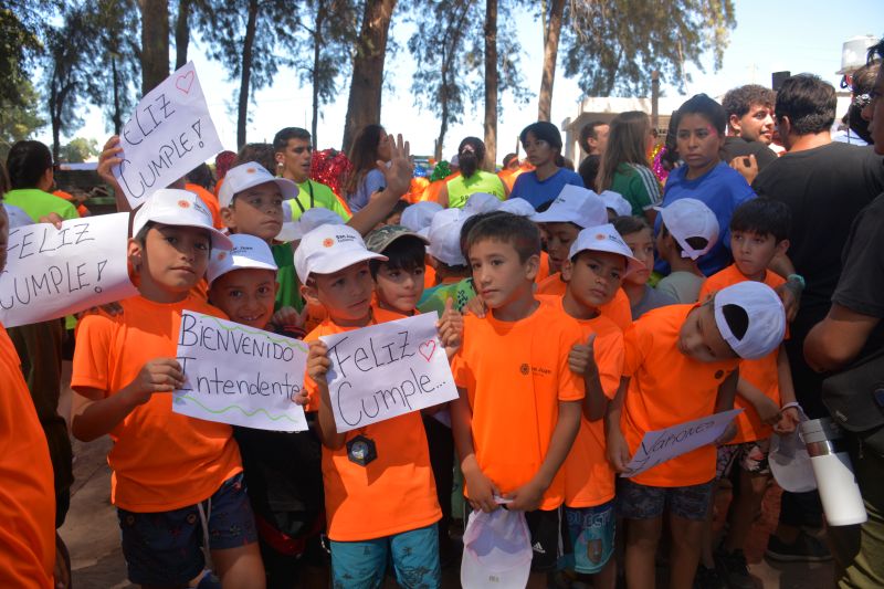 Es así que, el gobernador de San Juan, Dr. Marcelo Orrego, en su día de cumpleaños, llegó al Camping Don Bosco y fue recibido con carteles, dibujitos realizadas por los niños, muchos abrazos y el canto del Feliz cumpleaños.