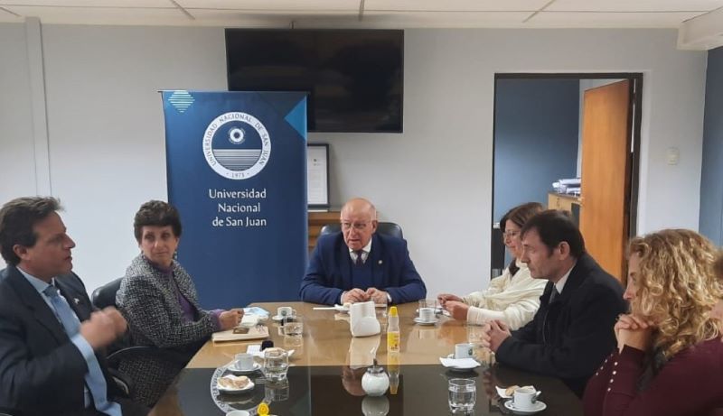 El rector de la UNSJ, Ing. Tadeo Berenguer, recibió la visita protocolar de la embajadora de Israel en Argentina, Lic. Galit Ronen, acompañada por el cónsul de Israel en Mendoza, Dr. Andrés Ostropolsky, y por el secretario de Relaciones Institucionales de San Juan, Marcelo Fretes. El Rector, por su parte, estuvo acompañado por la vicerrectora Analía Ponce y Secretarios y Secretarias de su Gabinete.