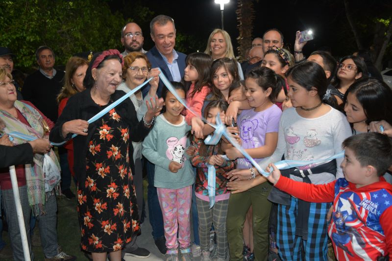 Luego, las autoridades municipales y vecinos y los niños quienes son los benefactores del espacio verde se sumaron al tradicional corte de la cinta. Farolas, veredines, jardines, rampas, juegos para niños, aparatos para gym, bancos, arboles y un espacio que reúne a los vecinos.