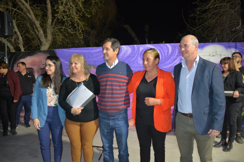 A continuación, las autoridades entregaron la Resolución del Consejo Deliberante de la Municipalidad de Rivadavia, placas a la Presidente de la Biblioteca Rómulo Fernández, Claudia Oliver.